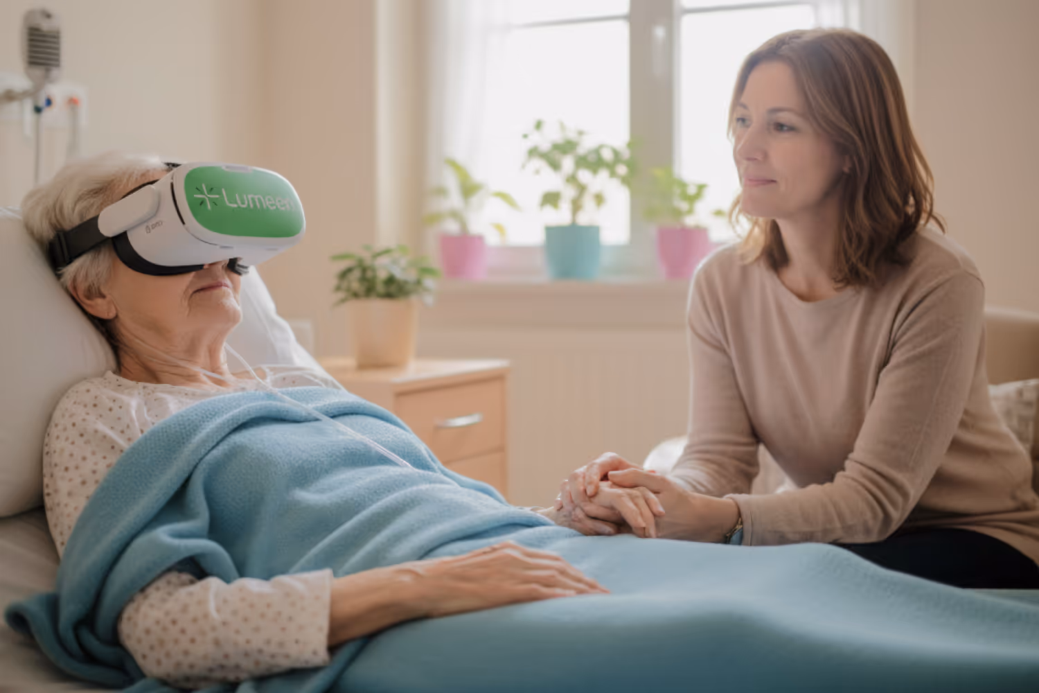 La solution Lumeen apporte un accompagnement immersif et une approche non médicamenteuse efficace pour soulager douleur et anxiété des patients cancéreux.